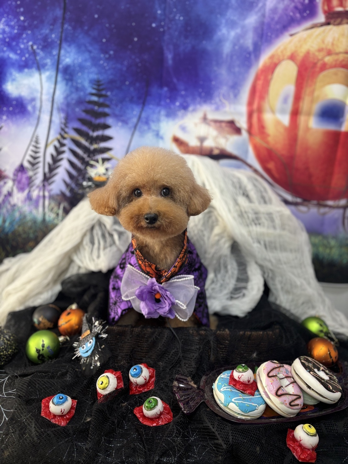 トリミングして可愛くなりましたね😊ハロウィンのスタジオ素敵🎃👻