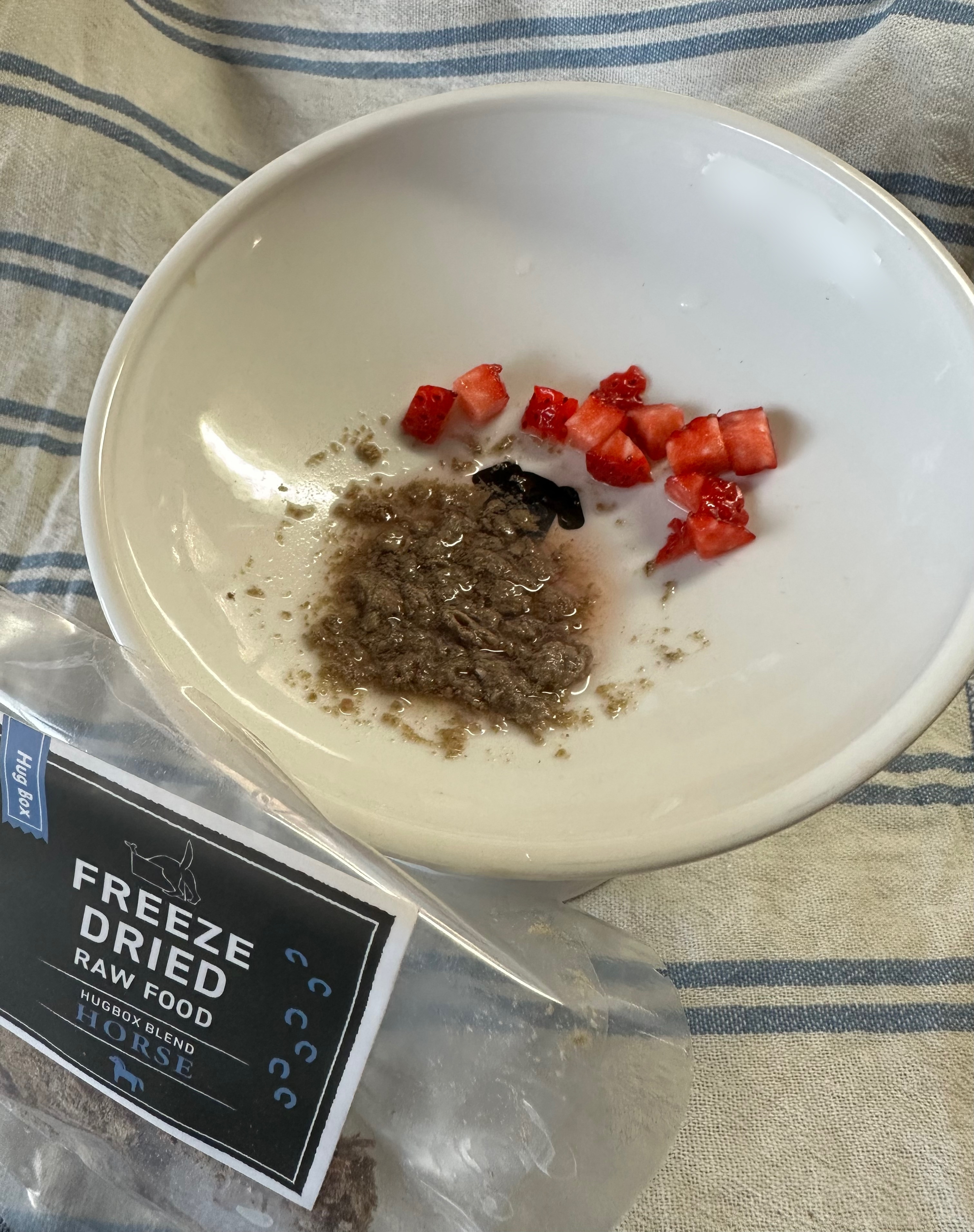 先日、ホイップに初めてフリーズドライをおやつに食べてもらいました😊いちごを添えて🍓