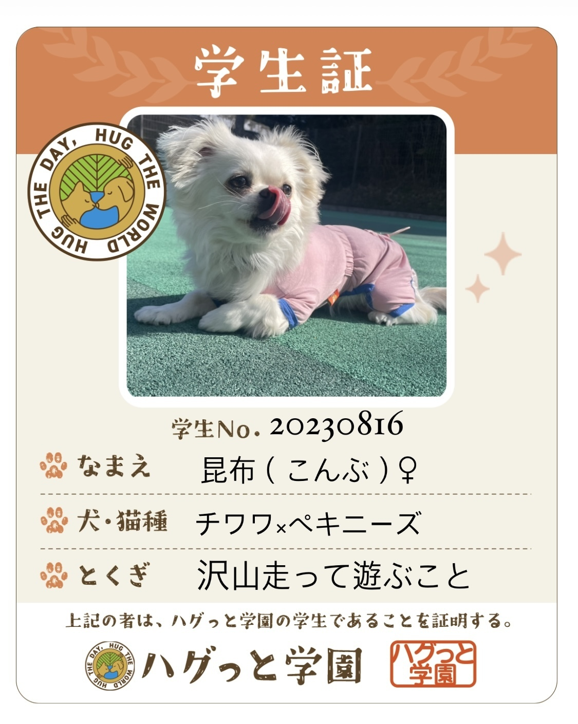 トップ > うちの子 活動報告 > Hug Lifeをシェアする☆ > 学生証🐶🐾 こんぶ 2025/02/03 15:18 学生証🐶🐾 だいぶ出遅れましたが 学生証を作りました👩🎓 学生no.はこんぶの誕生日に設定しました✨ これからもこんぶも飼い主も 楽しいHug Lifeになりますように🤭💫 いいね 共有する 共有する X facebook LINE リンクをコピー コメントする 2 件の返信 (新着順) ミュートしたユーザーの投稿です。 投稿を表示 ハグボックス 石田 2025/02/05 13:39 こんぶちゃん😍 学生証の作成ありがとうございます🫶 ぺろっとしたお顔がとっても可愛いです😍 いいね 返信する ミュートしたユーザーの投稿です。 投稿を表示 こんぶ 2025/02/05 15:53 ハグボックス 石田 ありがとうございます😊 お気に入りの写真の1枚です😋 いいね 返信する ミュートしたユーザーの投稿です。 投稿を表示 ペキチワのぷぅ🍦 2025/02/03 18:12 こんぶ 可愛い💕こんぶちゃんが着てるこのピンクのロンパースとっても似合ってます☺️✨ いいね 返信する ミュートしたユーザーの投稿です。 投稿を表示 こんぶ 2025/02/04 15:58 ペキチワのぷぅ🍦 ぷぅちゃんありがとうございます😊私もこのロンパースお気に入りでよくお出掛けの時に着せています🩷若干上半身がきついような😭下半身はゆるゆるなんですが😂ミックスあるあるですよね〜🫣 いいね 返信する