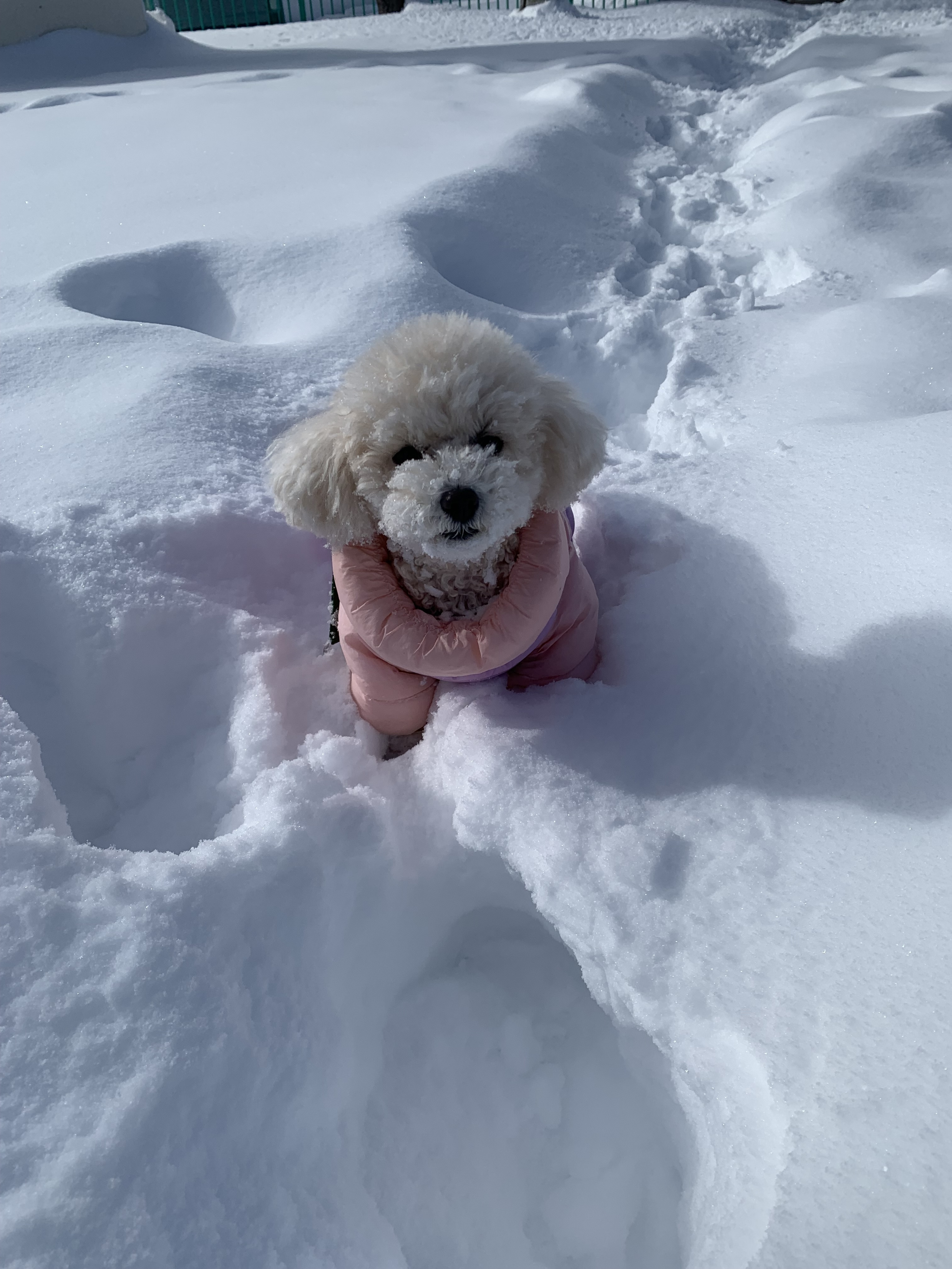 2.5kgの小さなぽぽにとっては、15cmほどの雪でも埋もれます
