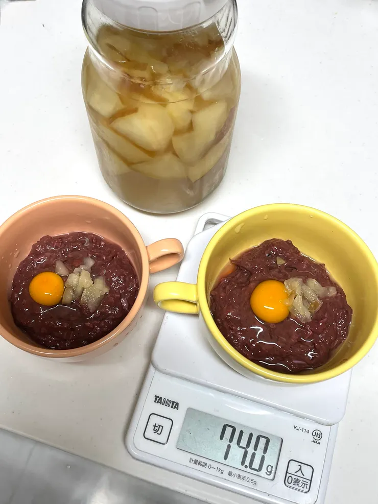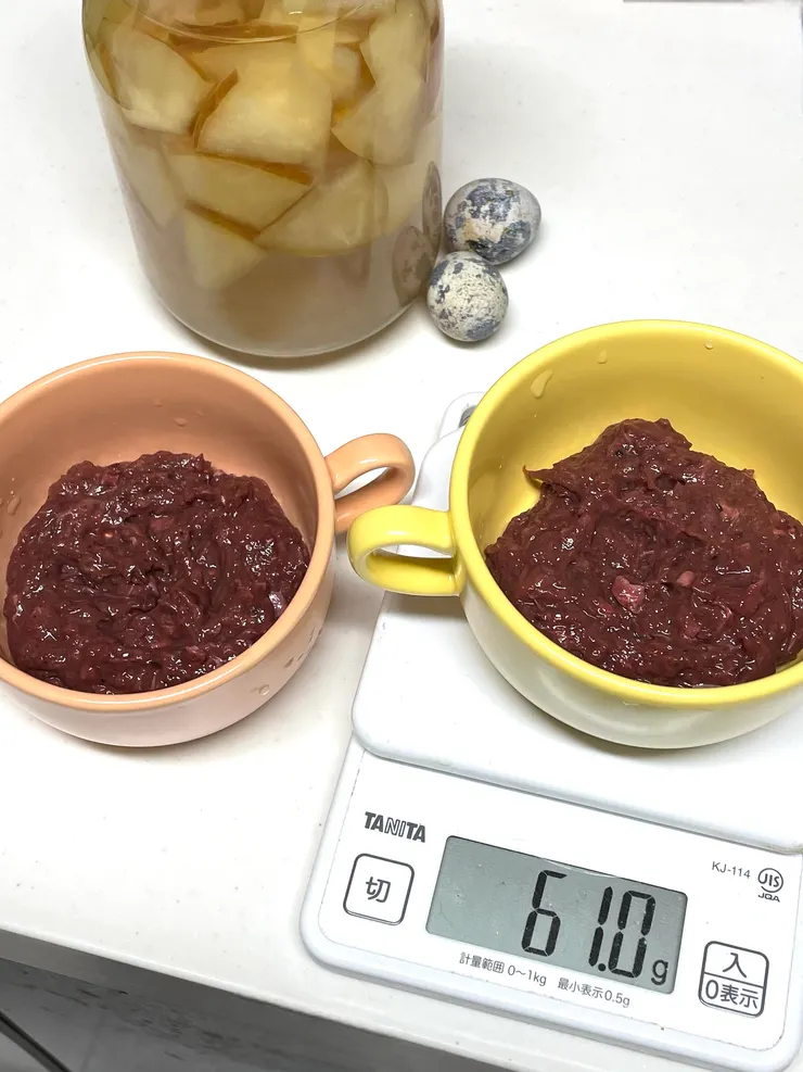 今日はうずらの卵🥚と発酵リンゴ🍎