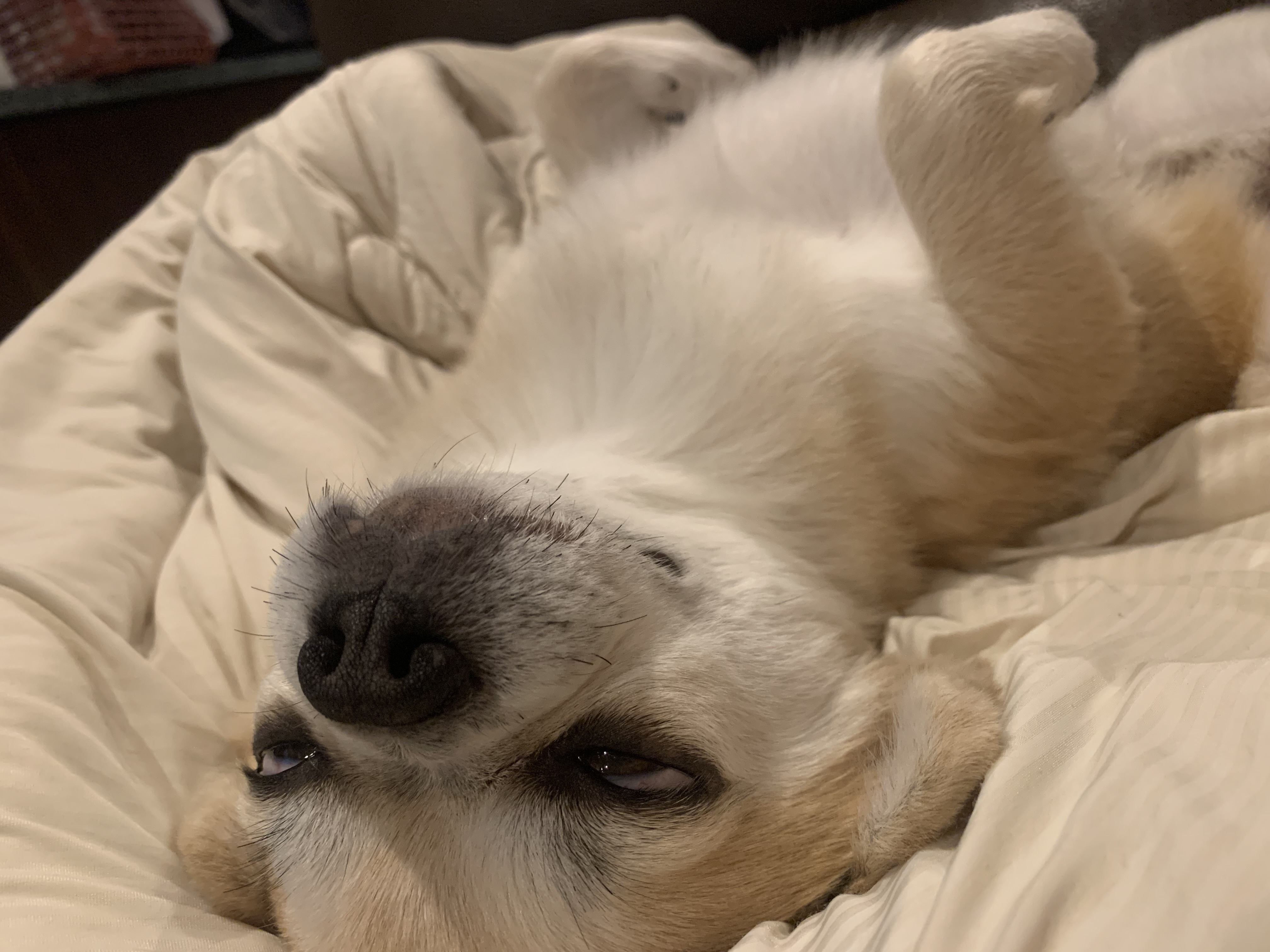 投稿を表示福くんヘソ天姿のチラ白目が