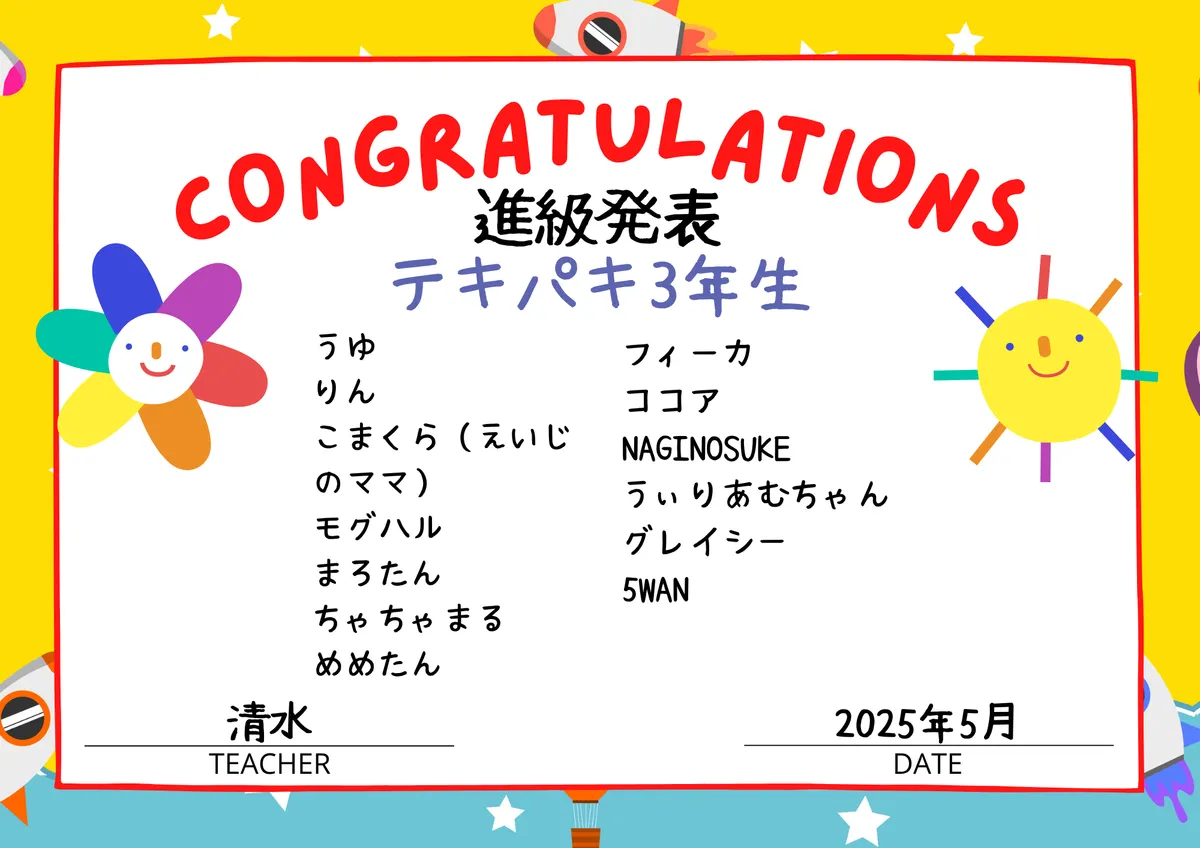 5月にランクアップ(進級)された方を発表いたします👏