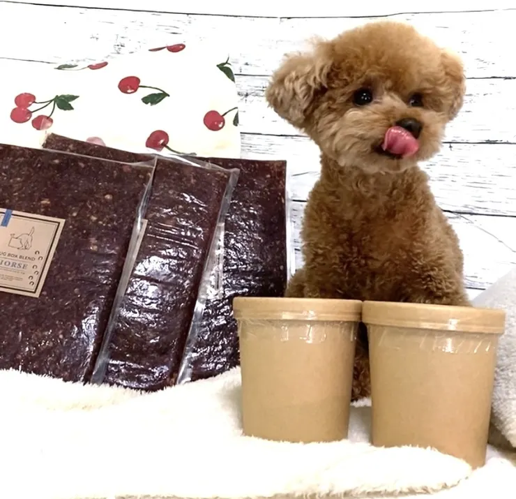 Hugboxが好きすぎて毎食初めて食べるの?と思うくらい大喜びで食べています😆秒で食べ終わってしまうので、早食い防止としてスプーンでひとくちずつ💦わんこそば形式であげています🥄