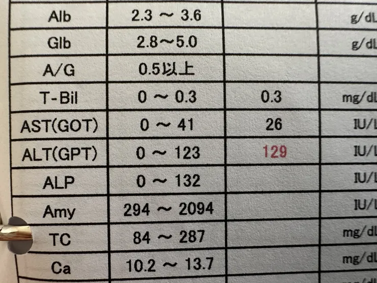 血液検査を受けたらALTが129まで