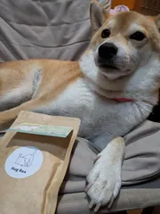 初めてお誕生日プレゼントを頂きました。ありがとうございます😊🎁ハグポックスを食べ始めてから、驚くほど、下痢をしなくなり、お腹が強くなってきたと思います。そして、毛もツヤツヤ✨