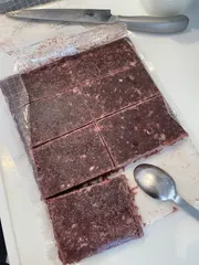 ハグボックスの小分け作業ですが、最初のころは毎食分ずつ計って小分けにしていました🍚ですが、まだ解凍しきってない状態で細かく切り分ける作業が、女性の私にはかなり大変で毎回疲弊していました💦皆さんの投稿みていて【わざわざ毎食分に分ける必要ないよね】と改めて思い、ざっくり8等分くらいに切ってそれを冷凍する