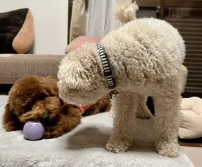 お兄ちゃんになりました🐾 レッドのトイプードルをお迎えしました🐻まめたろう2歳🐻❄️こたろう5か月🐻兄弟です🐾初めての多頭飼いで毎日わちゃわちゃと、楽しい生活が始まりました!こたろう🐻は、4か月からハグボックスですくすく育っています!おかげさまでお腹のトラブルもなく順調に成長しています🐾食欲も旺盛!これからもよろしくお願い
