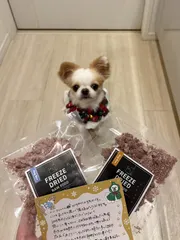 フリーズドライのフードが遂に!? プラチナ会員向けクリプレが25日に届きました🎁HUG BOXさん、ありがとうございます❤️😋開封してびっくり!なんとフリーズドライのフードじゃないですか!!しかも、そのままでもあげれるという✨🥹 これは災害時に便利すぎる!開発中とのことでしたが、