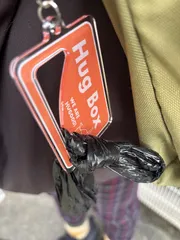 こんな感じです⭐︎ほんまに走っても飛んでも落ちない!! 我が家はチワワの多頭でハグボックスオンリーなので💩もコロコロで1匹の💩で袋1枚使うのは惜しいから3匹分まとめてます。今までは💩袋を入れる小さい巾着袋?に入れてたけど、巾着袋から出して‥っていう作業に意外と手間取ってて、、リードも持たな