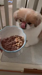 トリミングに行ってきました💗hugboxさんを食べているからかこんな毛質のいいペキニーズちゃん中々いない!と褒められ飼い主がとてもるんるんです🐶大人の毛になってきていますが、さらさらふわふわをキープ出来ています✨他の生食を食べさせたこともあるのですがうちの子はhugboxさんが1番食いつきがいいです