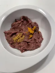 ゴールデンペースト追加💛✨で免疫力アップ⤴️ ハグボックスさんのインスタの投稿を見て、ゴールデンペースト作りおきしたまま、冷凍庫で眠っていたのを思い出し、いつものごはんにトッピングしました‼️色が似てるのでわかりにくいですが、右がゴールデンペースト、左がレバーキドニーです✨✨作り方はハグボックスさんのレシピ通りですが、量が多いのでうちは半量で作